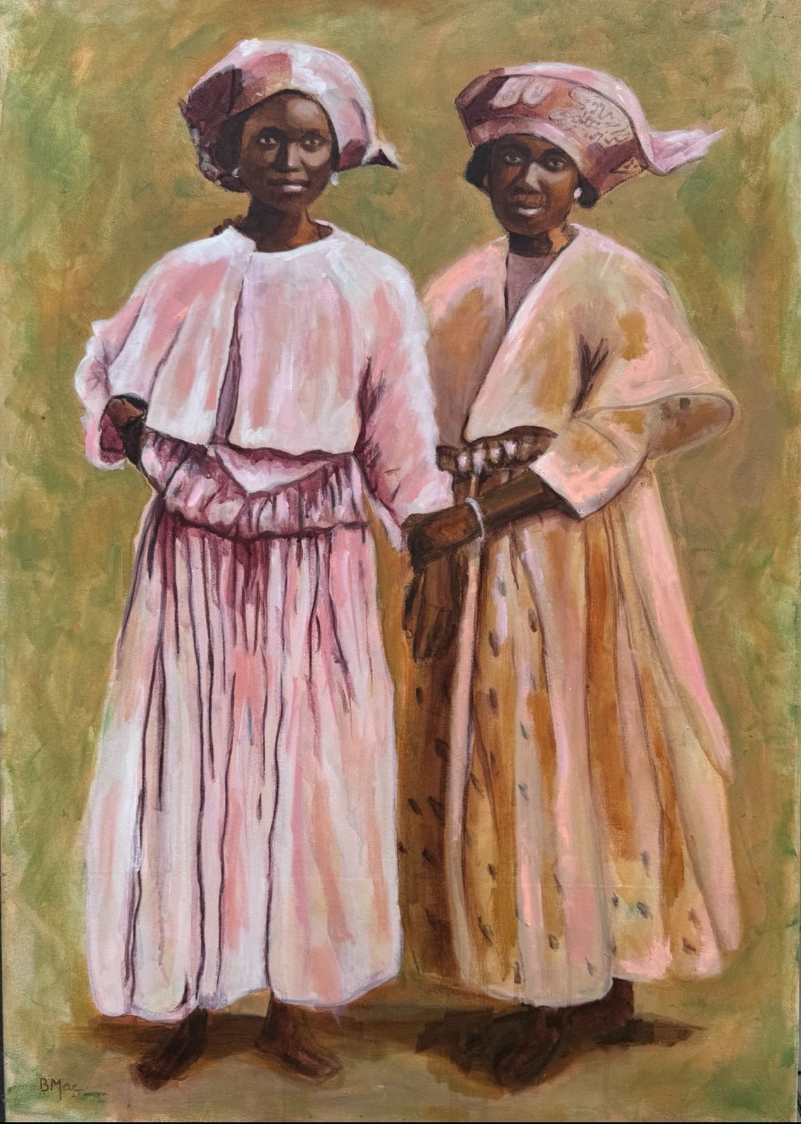 Dit werk is geïnspireerd op een oude foto en viert de rijke Surinaamse cultuur en tradities.